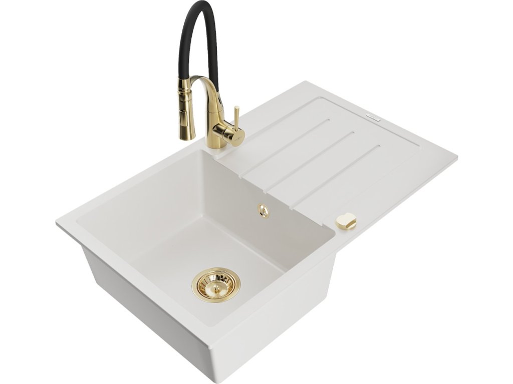 MEXEN/S - Bruno granitový dřez s odkapávačem včetně baterie Aster, bílá 6513-20-73450-57-G