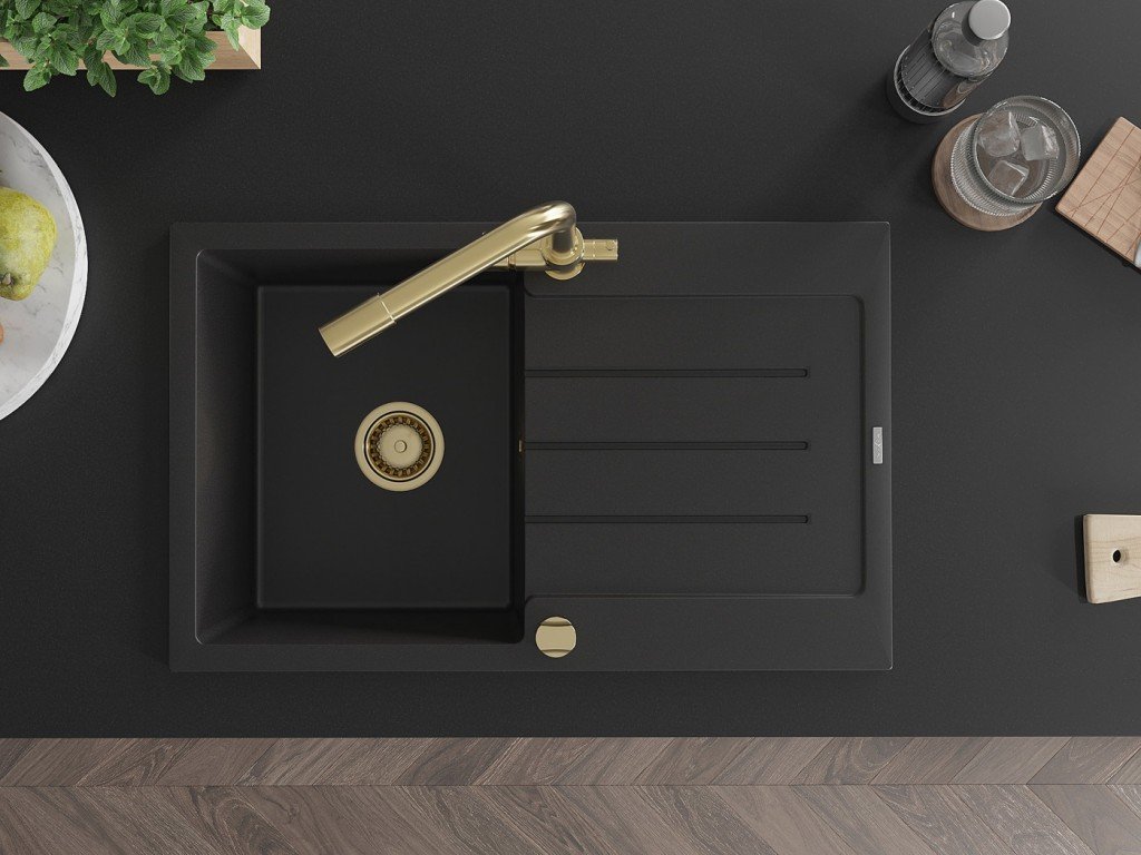 MEXEN/S - Bruno granitový dřez s odkapávačem včetně baterie Duero, černá 6513-77-671600-50