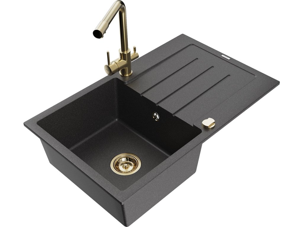 MEXEN/S - Bruno granitový dřez s odkapávačem včetně baterie Duero, černá kropenatá 6513-76-671600-50