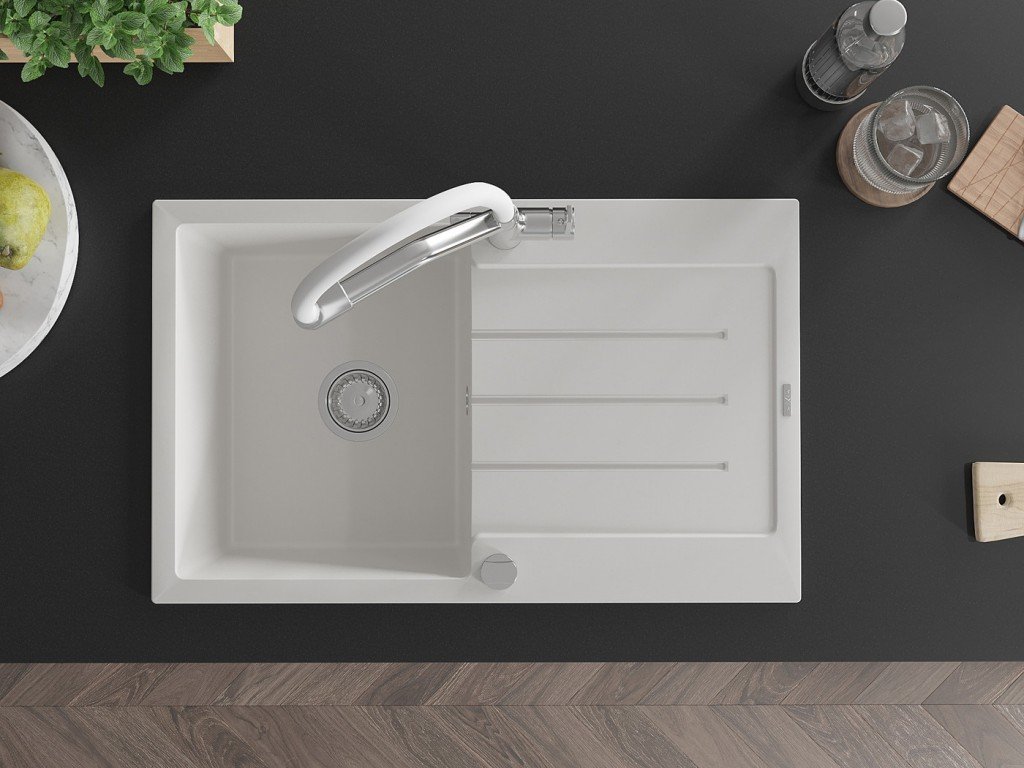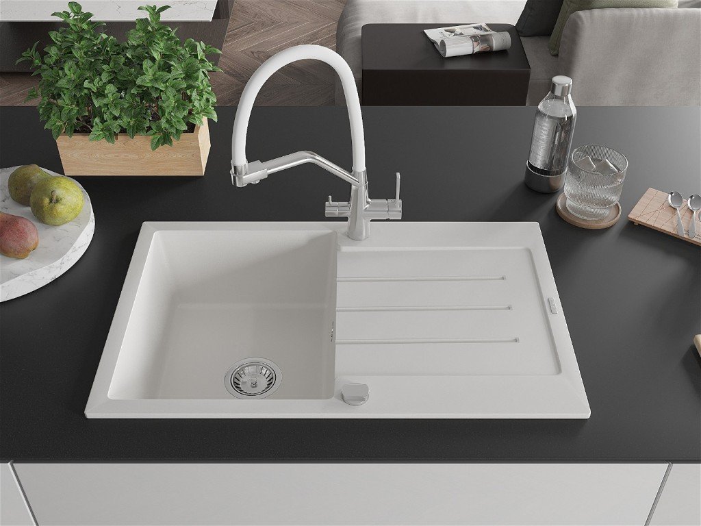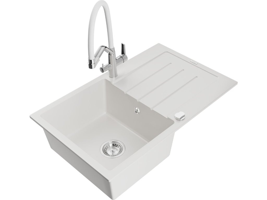 MEXEN/S - Bruno granitový dřez s odkapávačem včetně baterie Duo, bílá 6513-20-671701-02