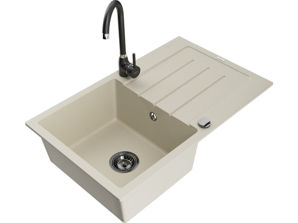 MEXEN/S - Bruno granitový dřez s odkapávačem včetně baterie Telma, béžová 6513-69-670200-70