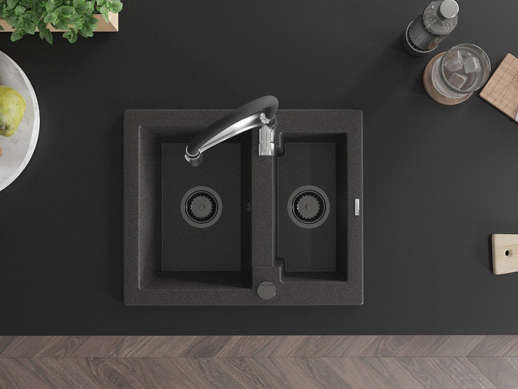 MEXEN/S - Carlos granitový dřez 1.5 včetně baterie Aster, černá kropenatá 6518-76-73450-07-B