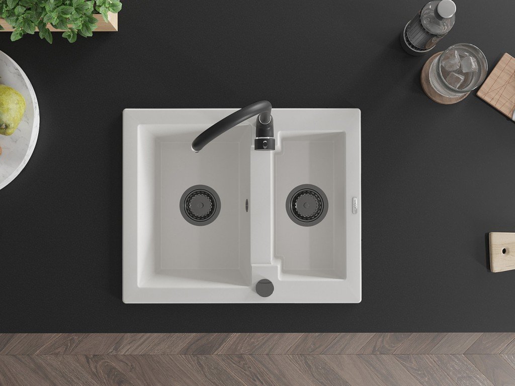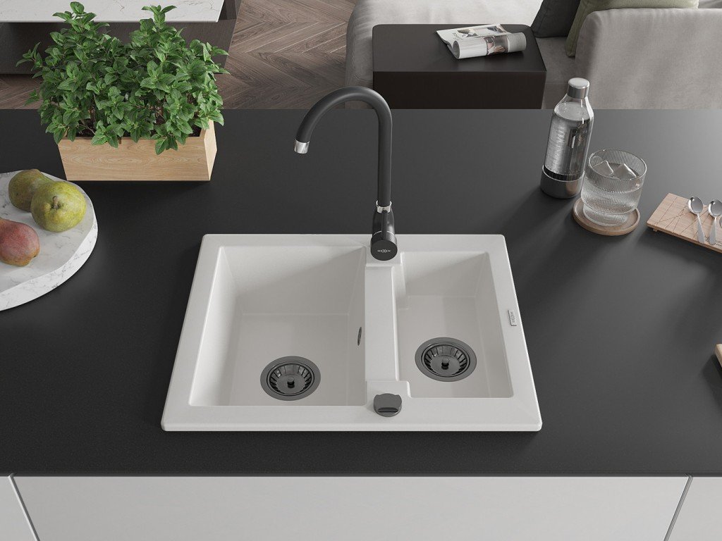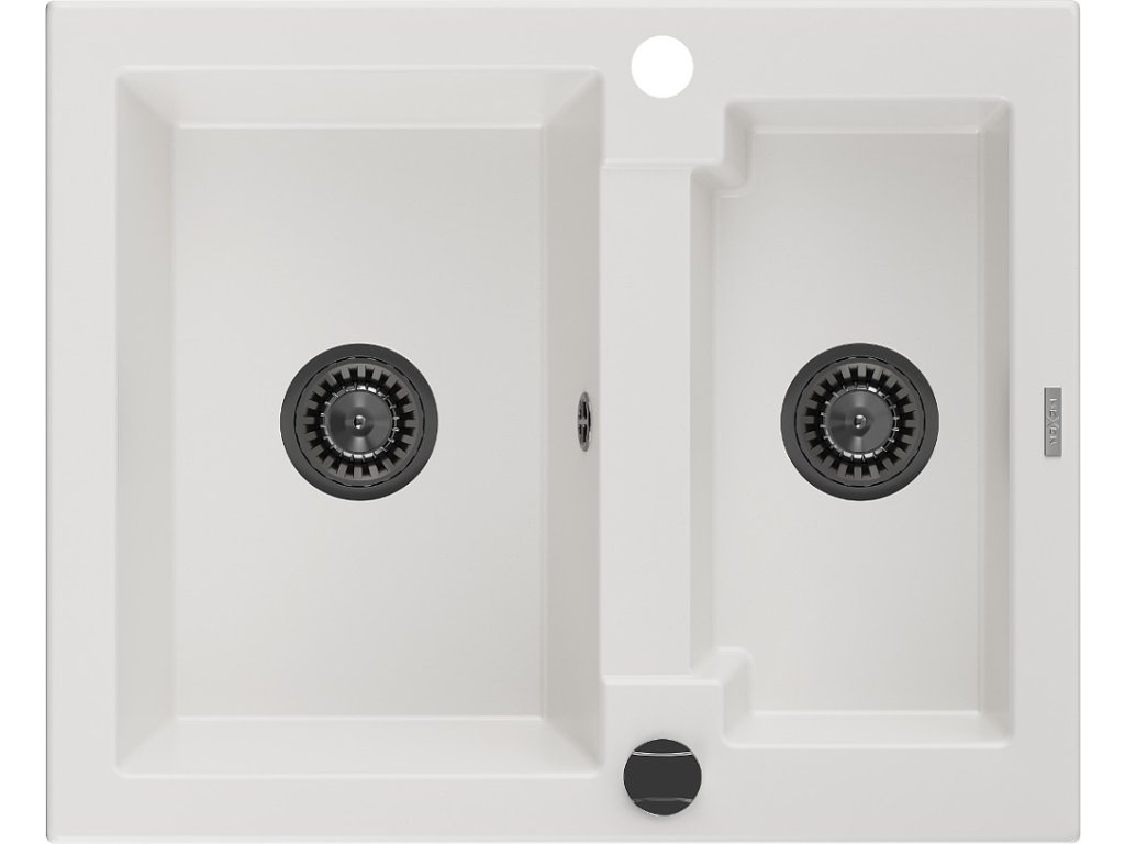 MEXEN/S - Carlos s granitový dřez 1.5 582 x 475 mm, bílá, + černý sifon 6518581500-20-B