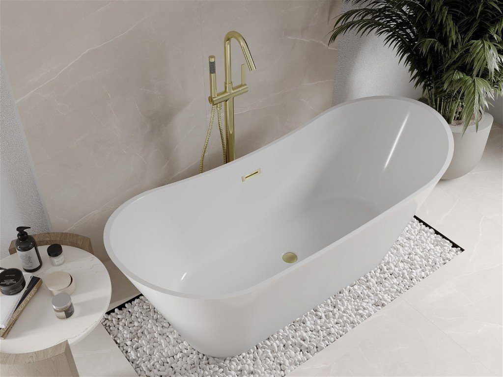 MEXEN/S - Celia vana volně stojící 170 x 75, bílá, sifon a přepad zlatá kartáčovaná 52331707500-55