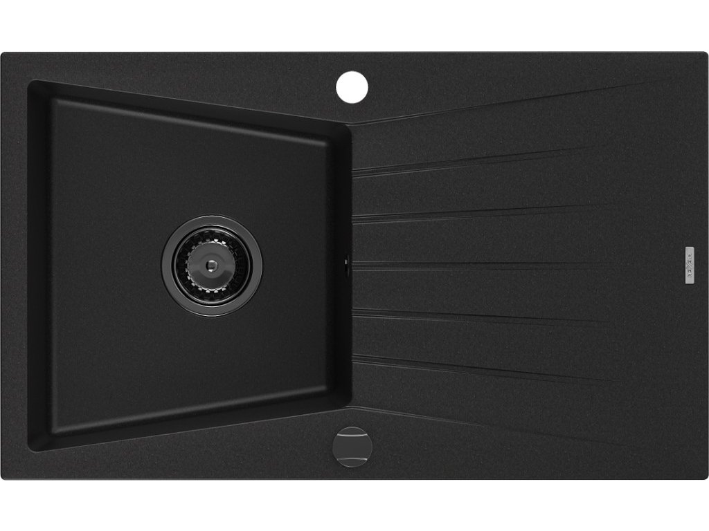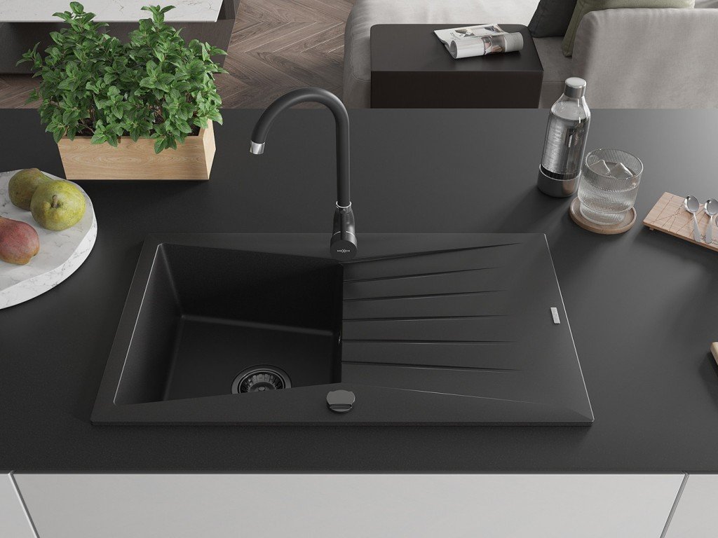 MEXEN/S - Cesar granitový dřez 1-miska s odkapávačem 775 x 470 mm, černý, černý sifon 6514771010-77-B