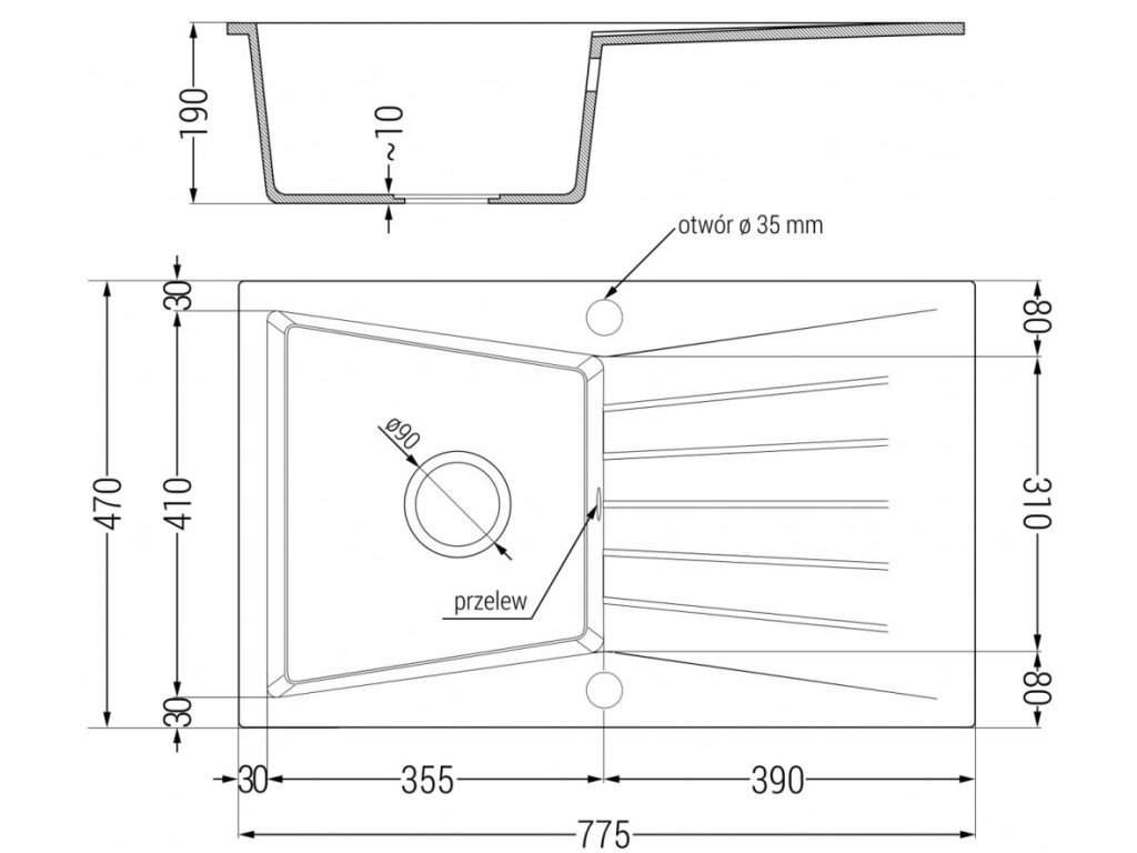 Materiál: žula (80 % žulové kamenivo, 20 % pryskyřice)