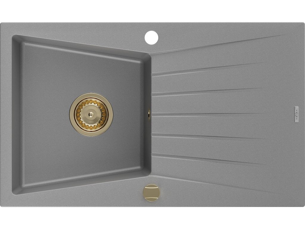MEXEN/S - Cesar granitový dřez 1 s odkapávačem 775x470 mm, šedá,+ zlatý sifon 6514771010-71-G