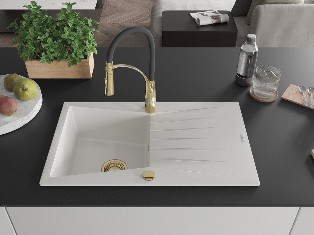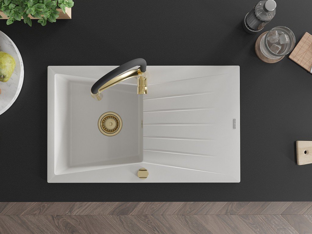 MEXEN/S - Andres granitový dřez s odkapávačem včetně baterie Aster, bílá 6515-20-73450-70-B