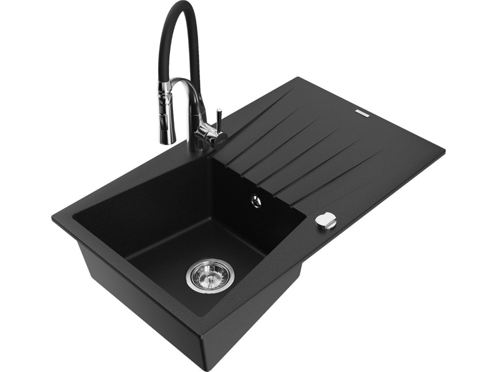 MEXEN/S - Cesar granitový dřez s odkapávačem včetně baterie Aster, černá 6514-77-73450-07