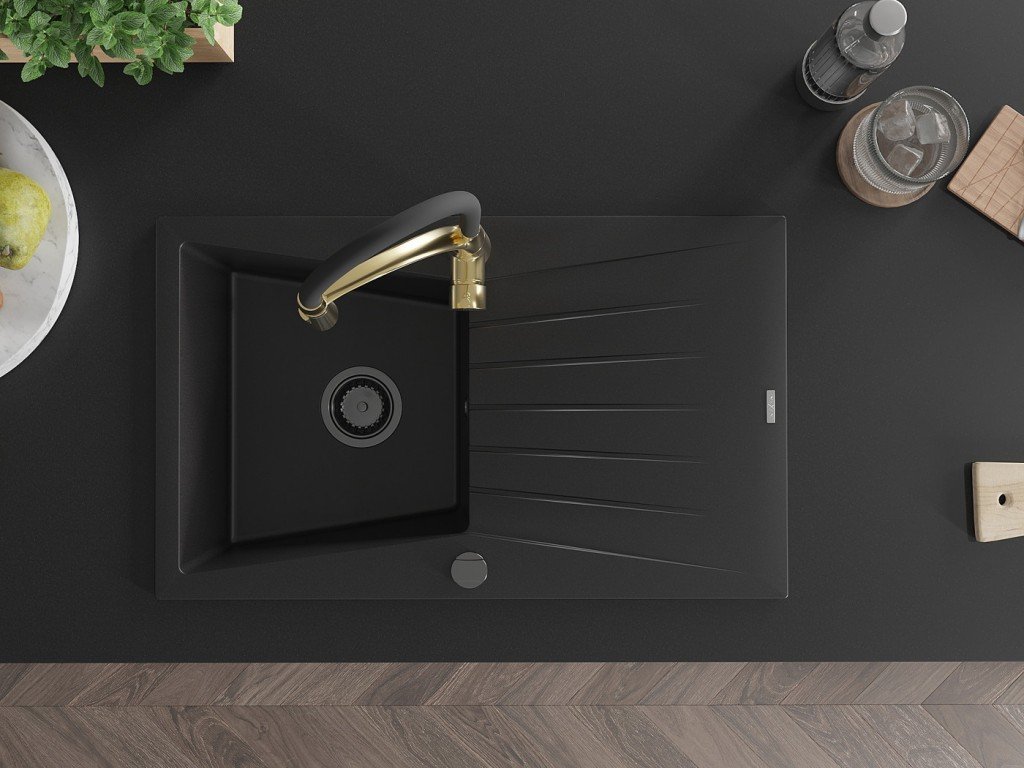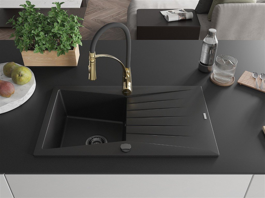 MEXEN/S - Cesar granitový dřez s odkapávačem včetně baterie Aster, černá 6514-77-73450-57-B