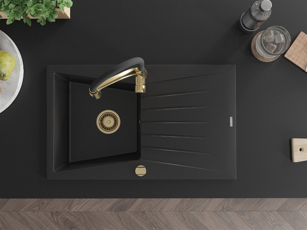 MEXEN/S - Cesar granitový dřez s odkapávačem včetně baterie Aster, černá 6514-77-73450-57-G