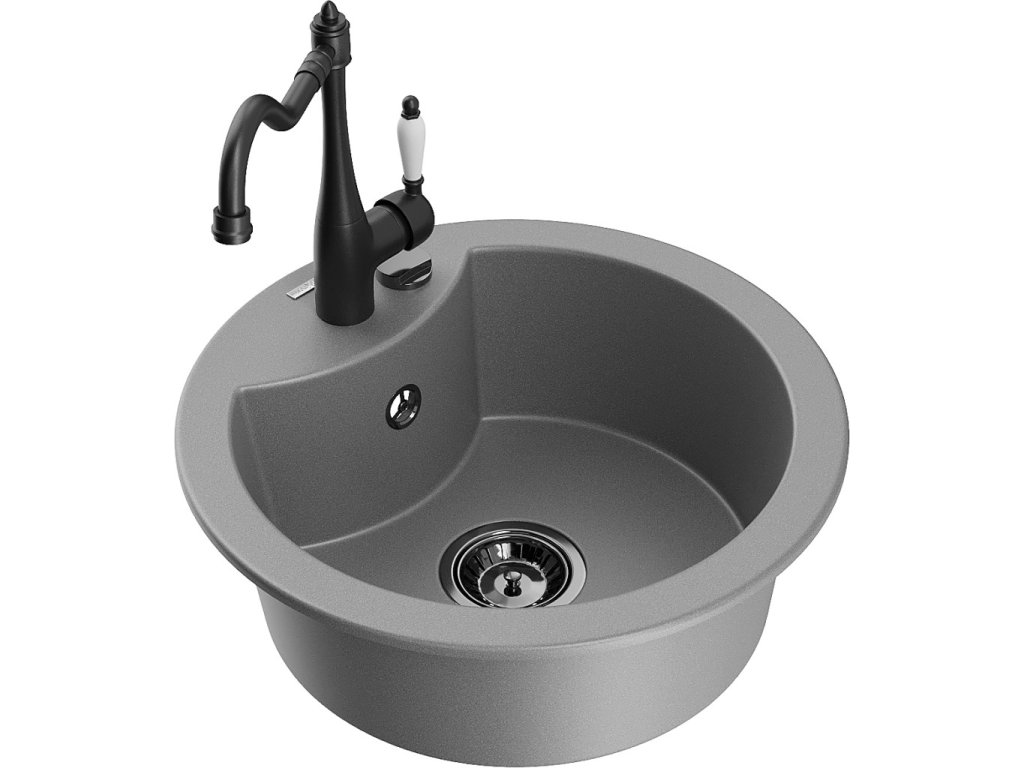 MEXEN/S - Diego granitový dřez 1-miska včetně baterie Carla, šedá 6512-71-670700-70-B