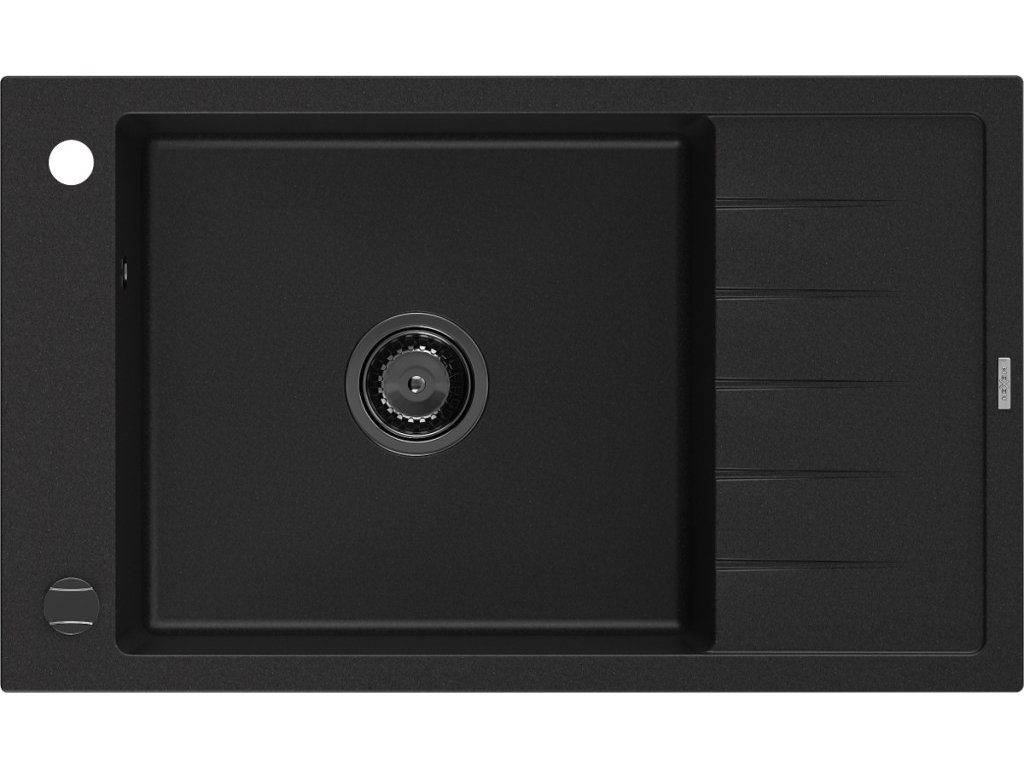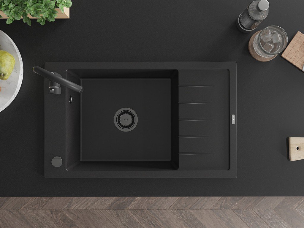 MEXEN/S - Elias granitový dřez 1-miska s odkapávačem 795 x 480 mm, černá, sifon černá 6511791005-77-B