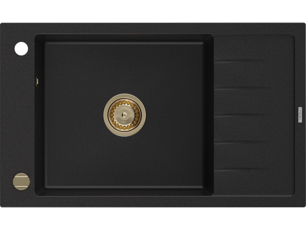 MEXEN/S - Elias granitový dřez 1-miska s odkapávačem 795 x 480 mm, černý, zlatý sifon 6511791005-77-G