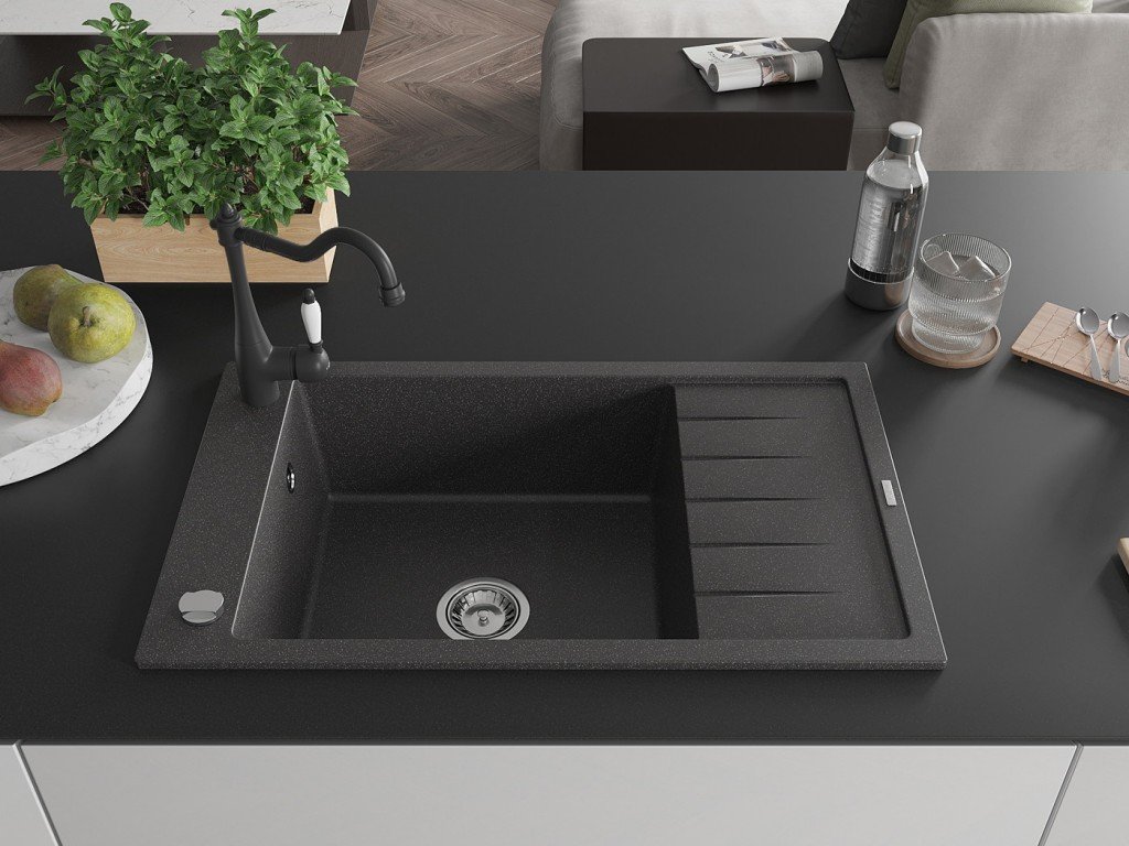 MEXEN/S - Elias granitový dřez 1-miska s odkapávačem včetně baterie Carla, černá kropenatá 6511-76-670700-70