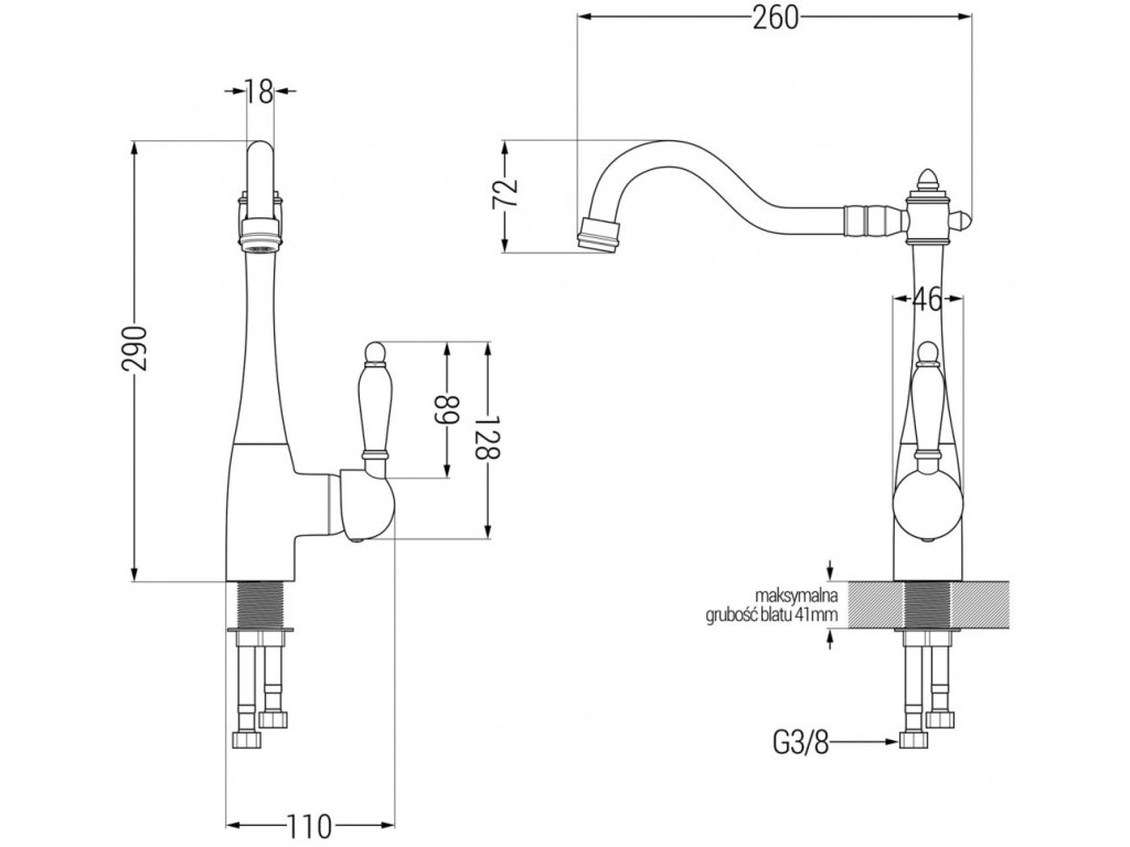 Rozsah výtoku: 260 mm