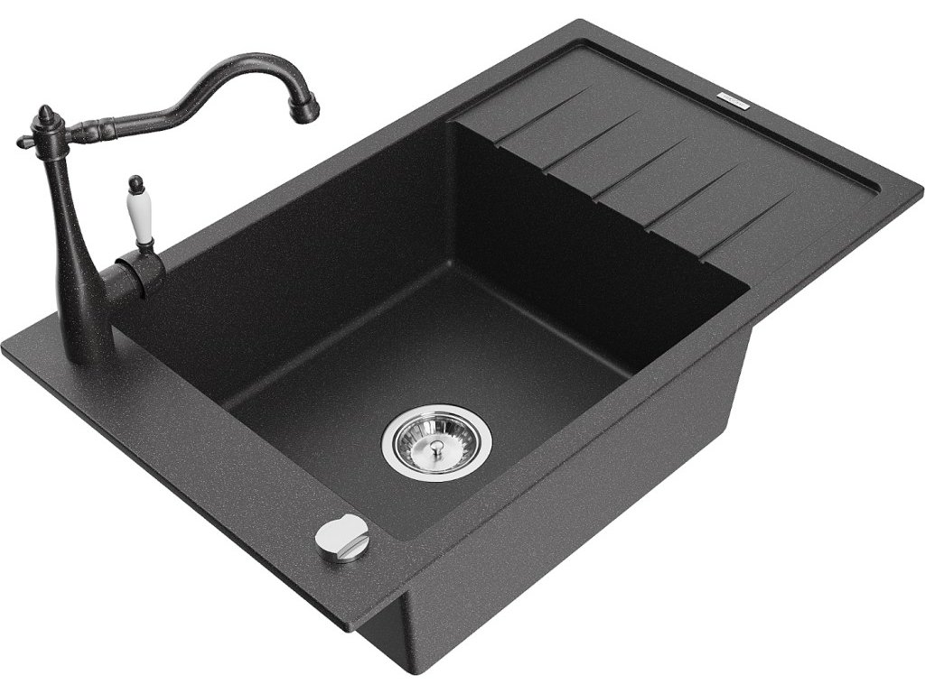 MEXEN/S - Elias granitový dřez 1-miska s odkapávačem včetně baterie Carla, černá kropenatá 6511-76-670700-76