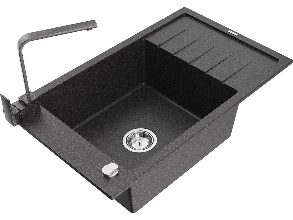 MEXEN/S - Elias granitový dřez 1-miska s odkapávačem včetně baterie Rita, černý kropenatý 6511-76-670300-76
