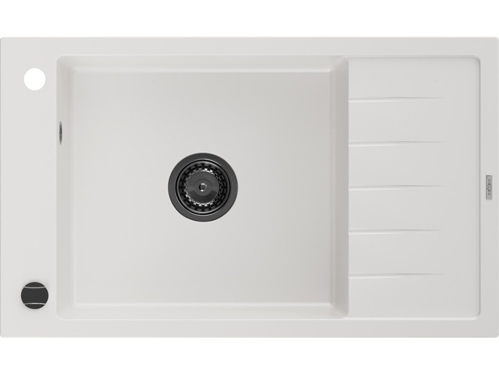 MEXEN/S - Elias granitový dřez 1 s odkapávačem 795 x 480 mm, bílá, + černý sifon 6511791005-20-B