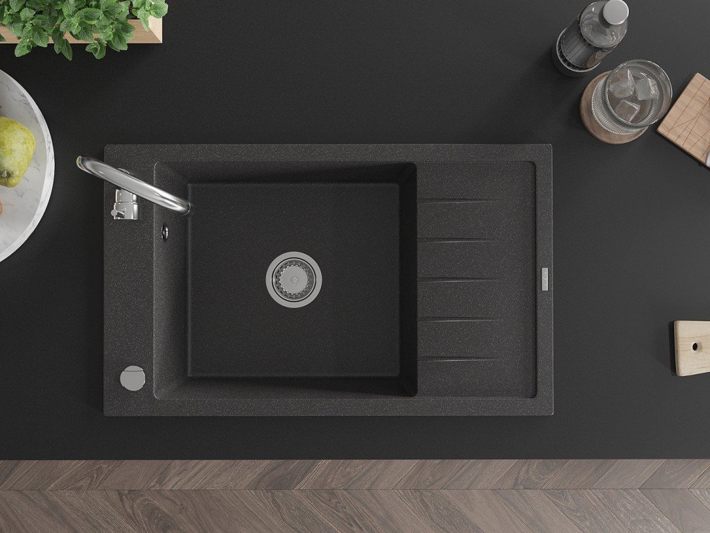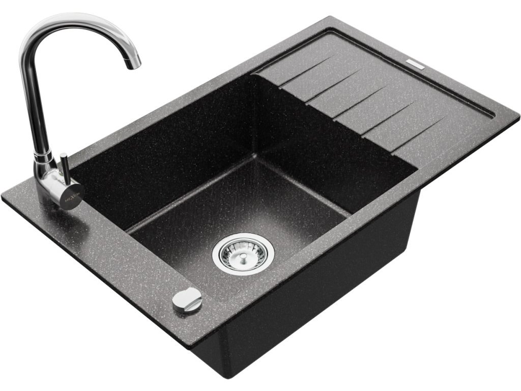 MEXEN/S - Elias granitový dřez 1 s odkapávačem včetně baterie Telma, černá kropenatý 6511-76-670200-00
