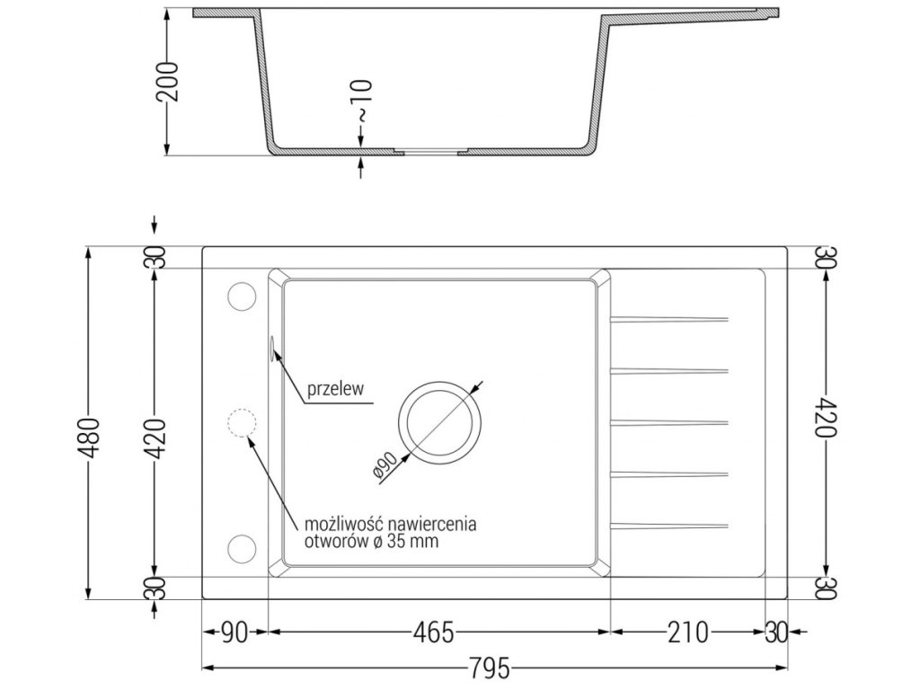 Průměr odtoku: ø90 mm