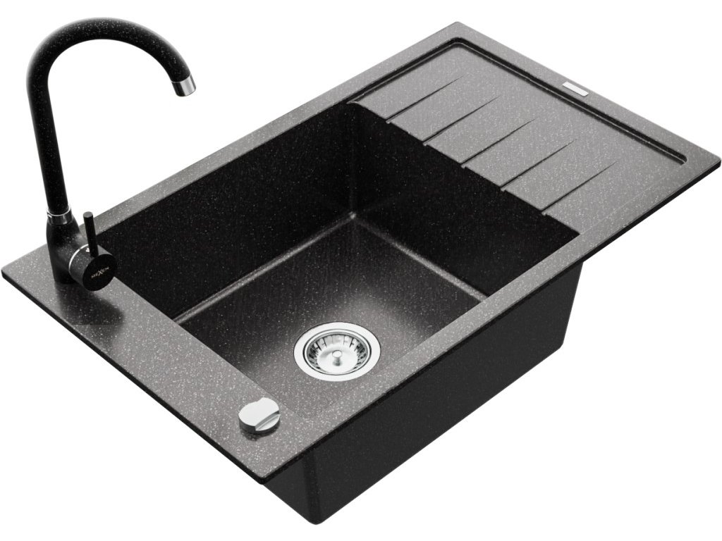 MEXEN/S - Elias granitový dřez 1 s odkapávačem včetně baterie Telma, černá kropenatý 6511-76-670200-76
