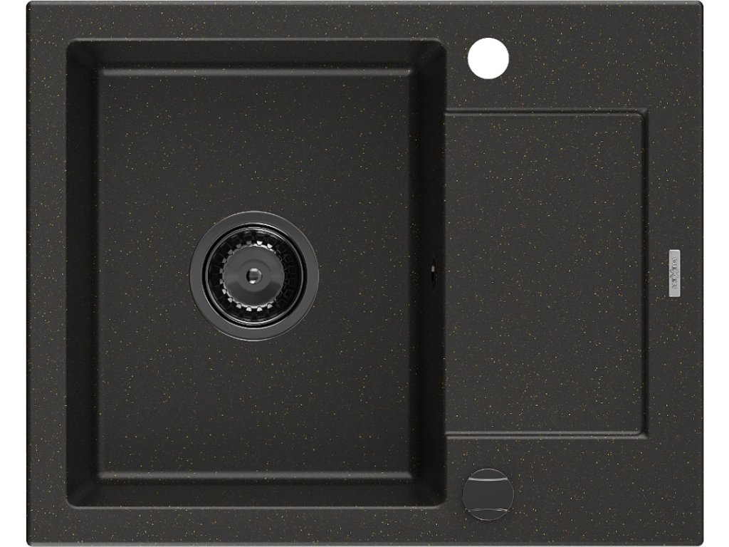 MEXEN/S - Enzo granitový dřez 1 s odkapávačem 576 x 465 mm, černá/zlatý metalik, + sifon grafit 6506571005-75-B