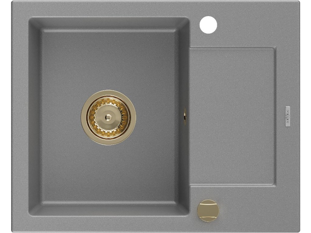 MEXEN/S - Enzo granitový dřez 1 s odkapávačem 576x465 mm, šedá,+ zlatý sifon 6506571005-71-G