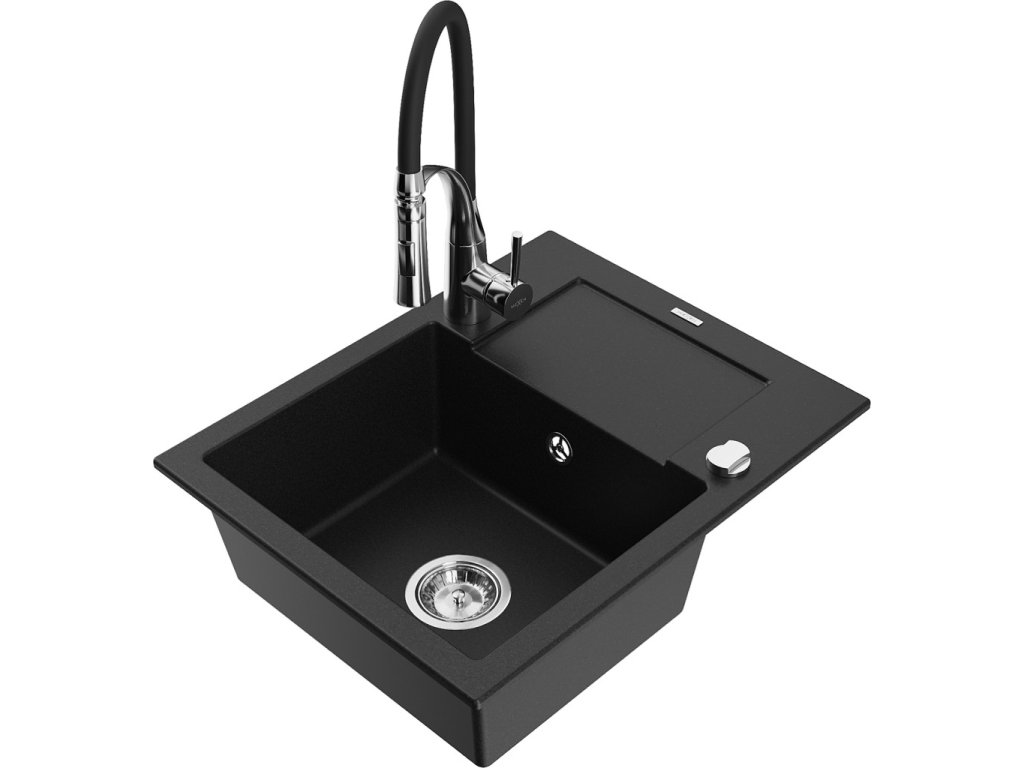 MEXEN/S - Enzo granitový dřez 1 s odkapávačem včetně baterie Aster, černá 6506-77-73450-07