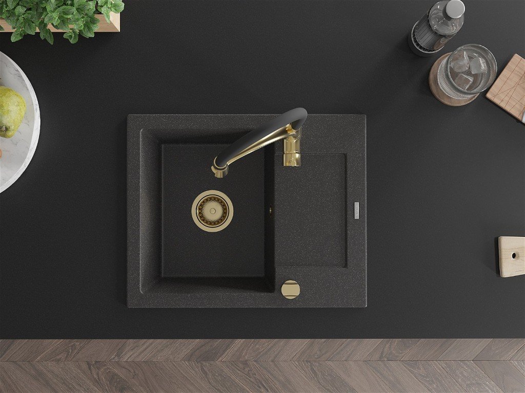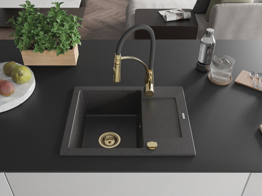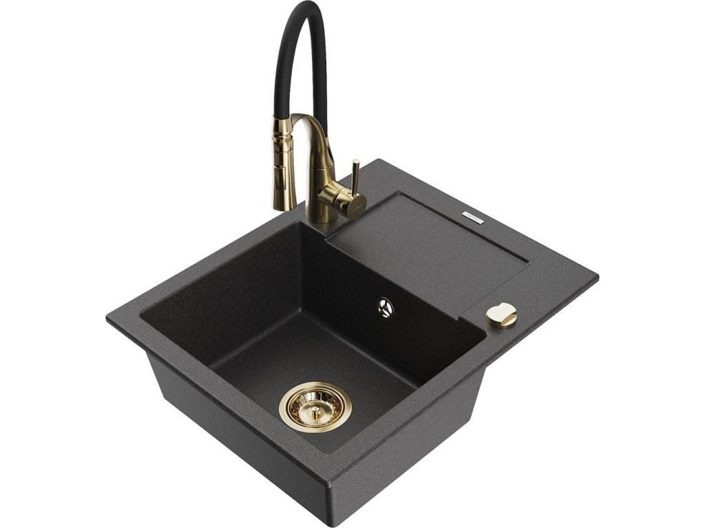 MEXEN/S - Enzo granitový dřez 1 s odkapávačem včetně baterie Aster, černá kropenatá 6506-76-73450-57-G