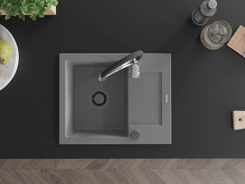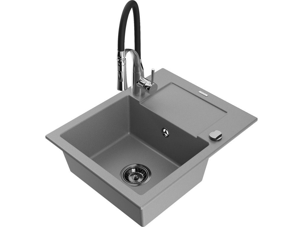 MEXEN/S - Enzo granitový dřez 1 s odkapávačem včetně baterie Aster, šedá 6506-71-73450-07-B