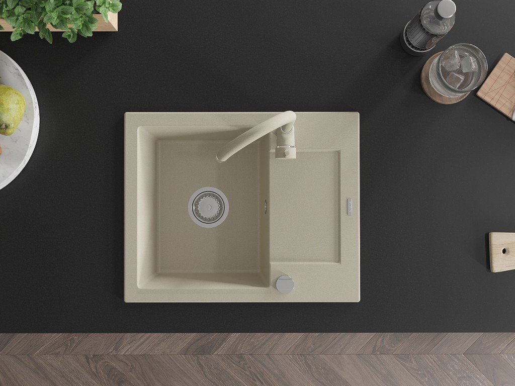 MEXEN/S - Enzo granitový dřez 1 s odkapávačem včetně baterie Telma, bílá 6506-69-670200-69