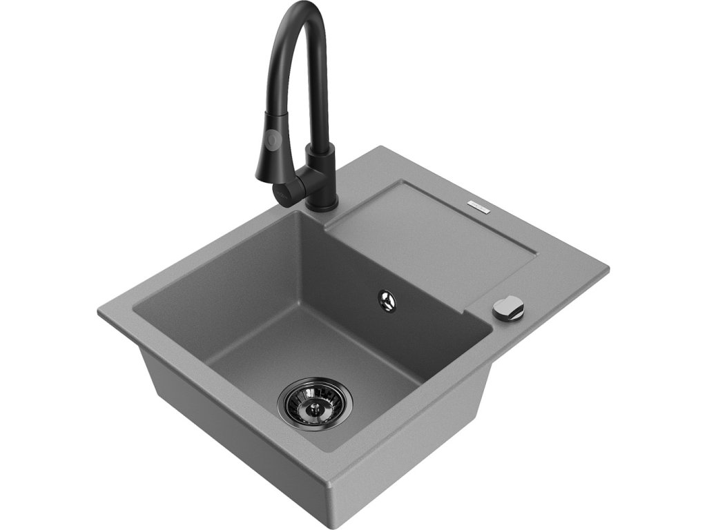 MEXEN/S - Enzo granitový dřez 1 s odkapávačem včetně Elia, šedá 6506-71-670101-70-B