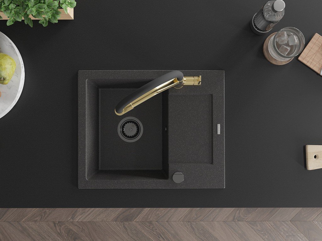 MEXEN/S - Enzo granitový dřez s odkapávačem včetně baterie Duo, černá kropenatá 6506-76-671701-57-B