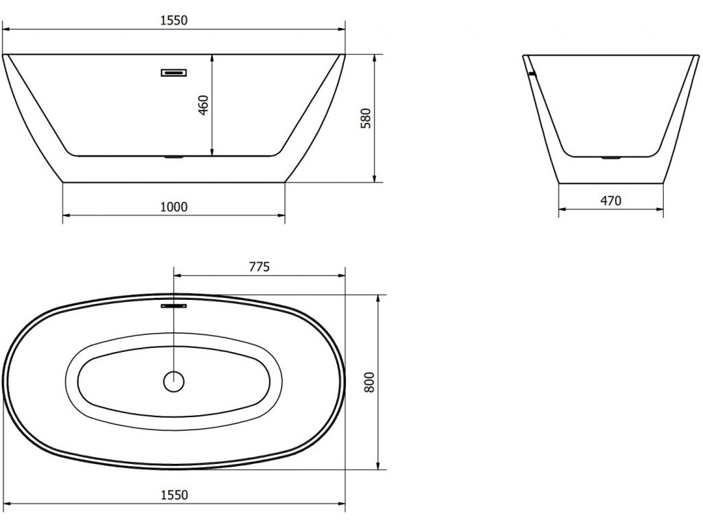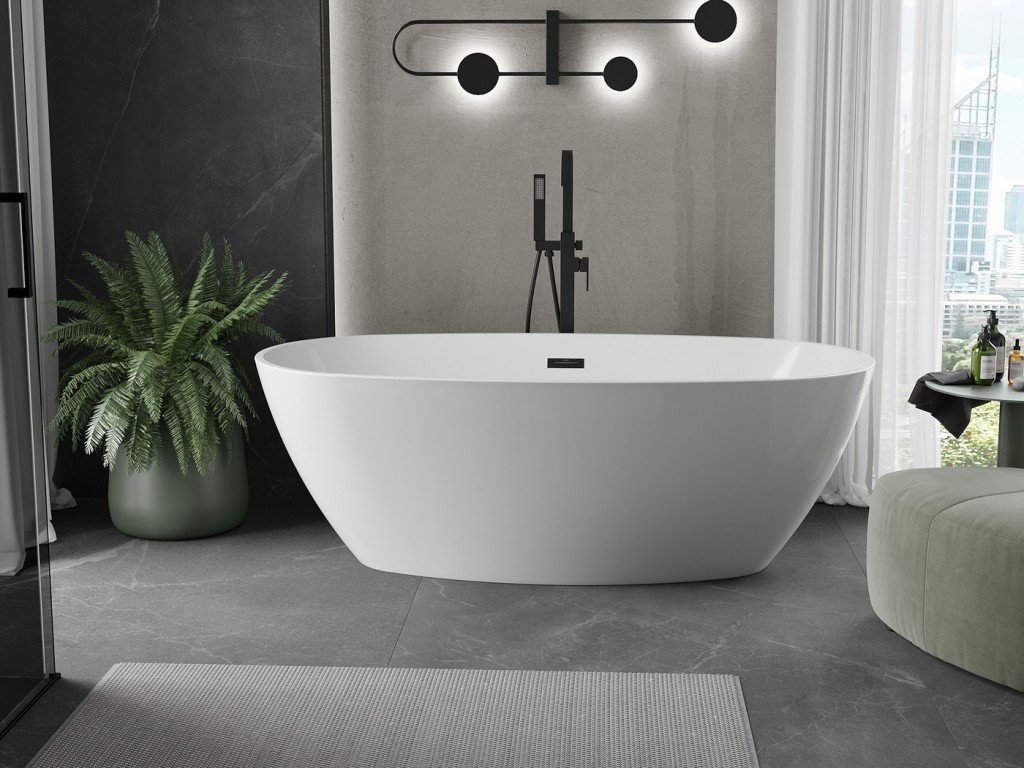 MEXEN/S - Eris volně stojící vana 155 x 80, bílá, sifon a přepad černá 53441558000-70