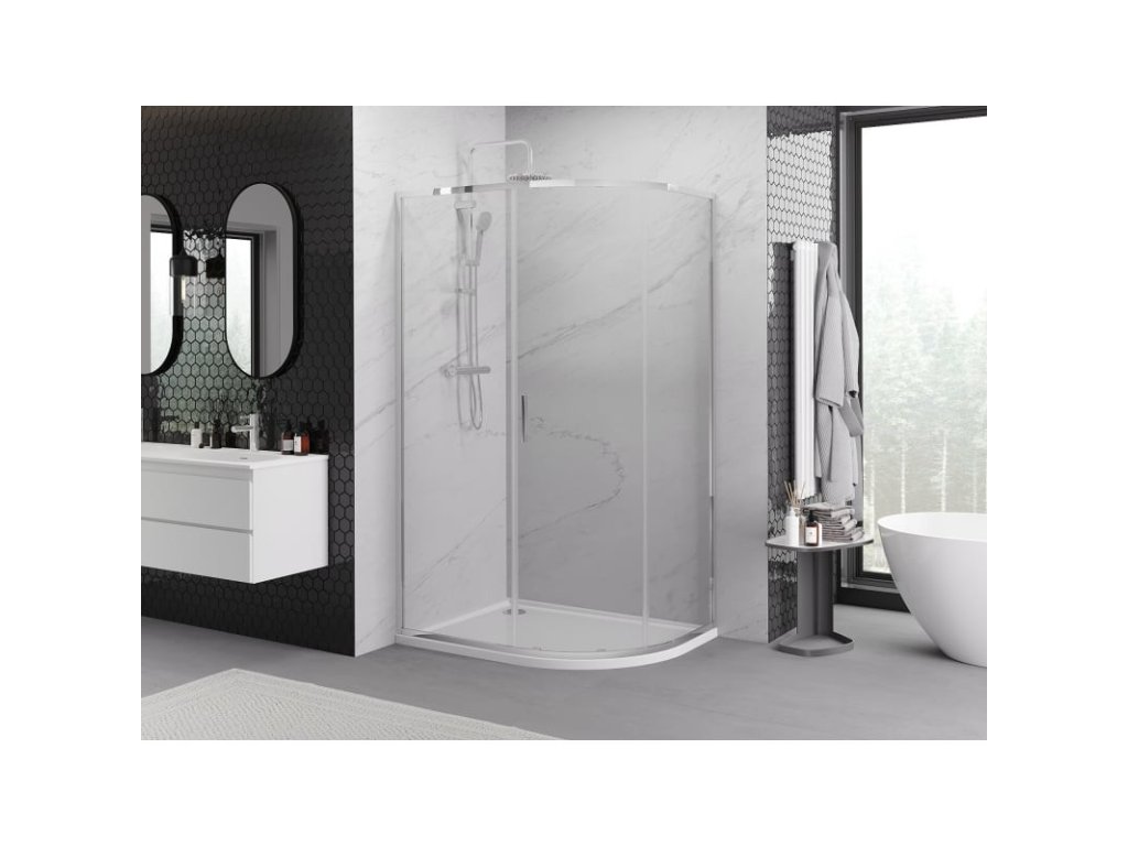 MEXEN/S - Exo čtvrtkruhový asymetrický posuvný sprchový kout 90 x 80, transparent, chrom 8131-090-080-01-00