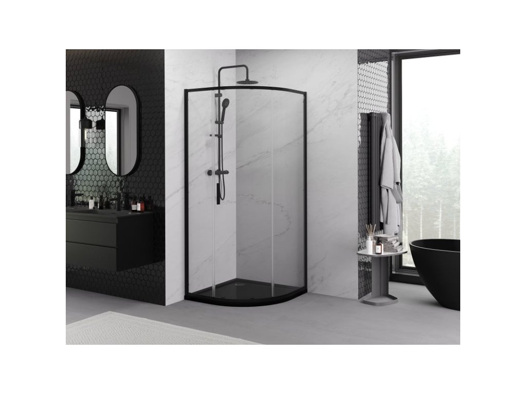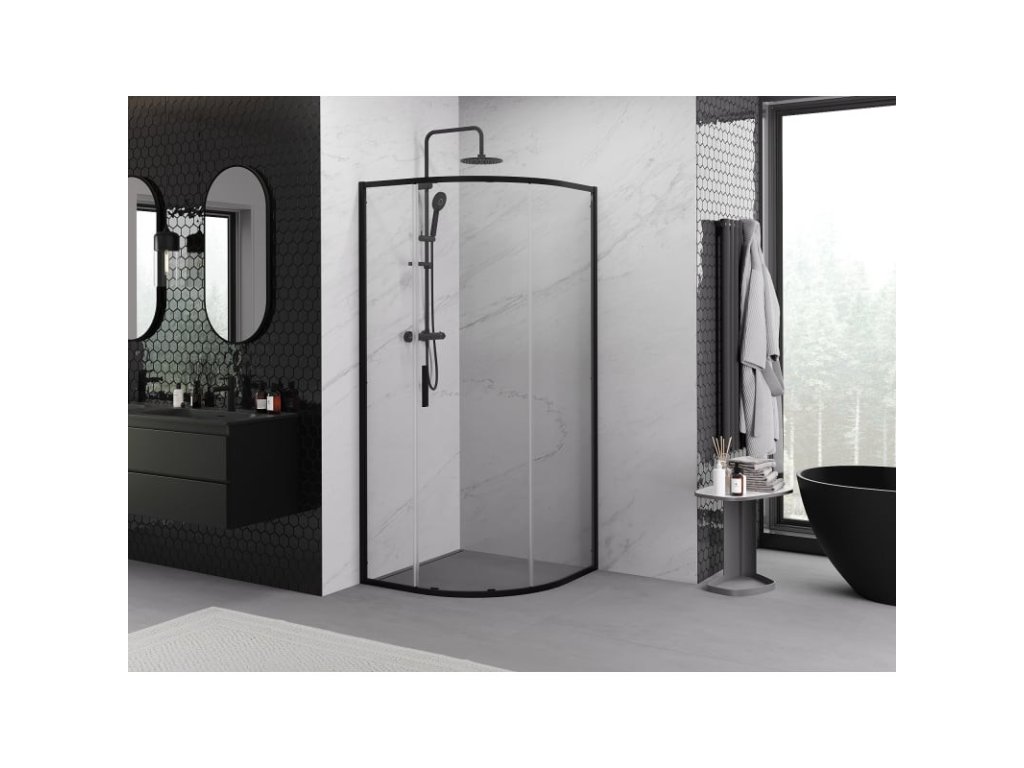 MEXEN/S - Exo čtvrtkruhový posuvný sprchový kout 80 x 80, transparent, černá 8131-080-080-70-00