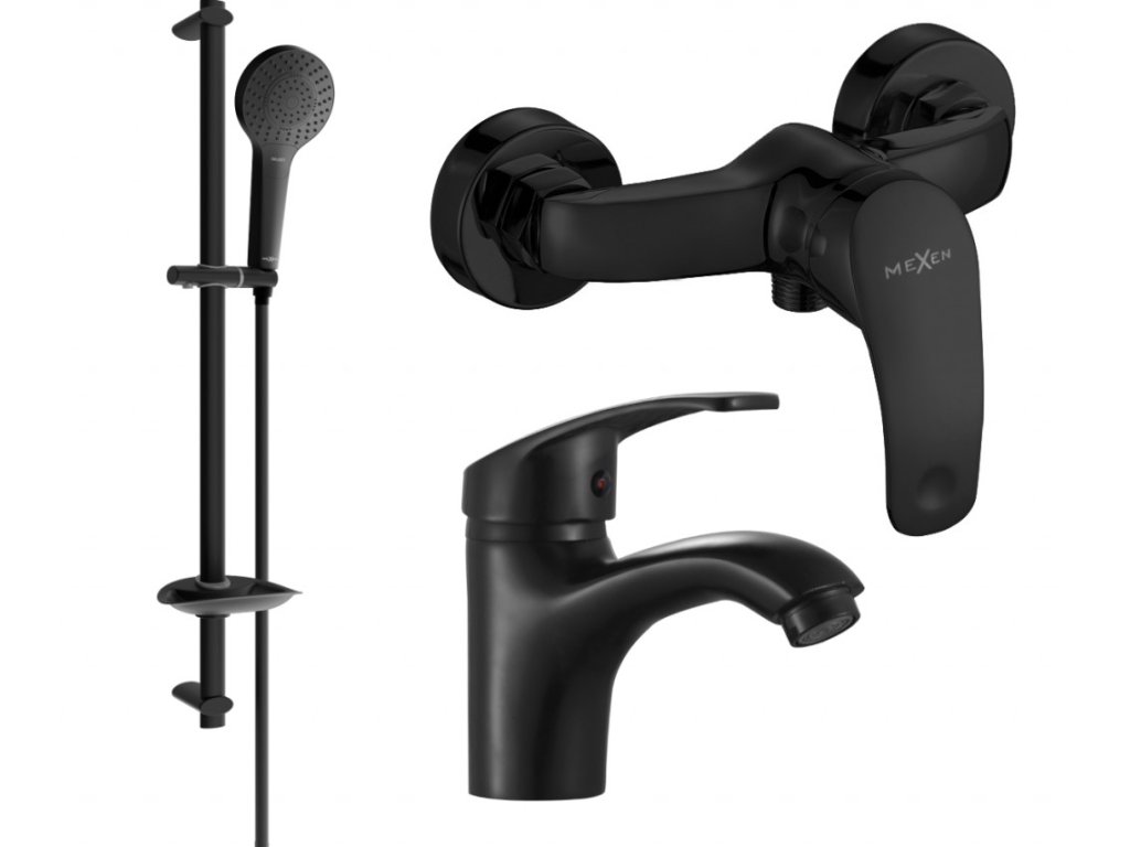 MEXEN/S - Fabia DB05 Set umyvadlové a sprchové baterie s příslušenstvím, černá 746504DB05-70