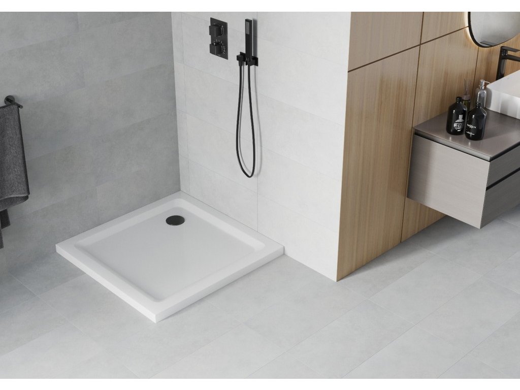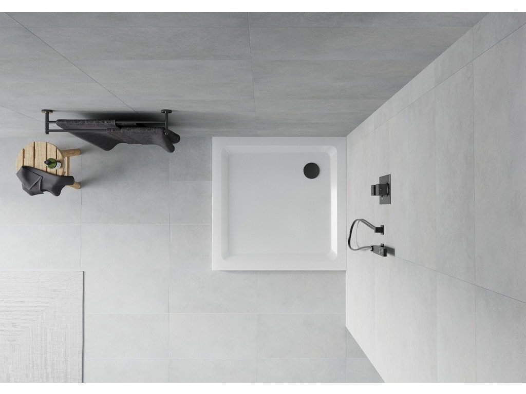 MEXEN/S - Flat sprchová vanička čtvercová slim 80 x 80, bílá + černý sifon 40108080B