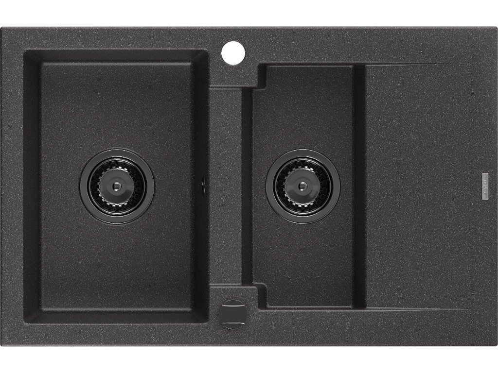 MEXEN/S - Gaspar granitový dřez 1.5 s odkapávačem 737 x 475 mm, černý kropenatý, černý sifon 6507731505-76-B