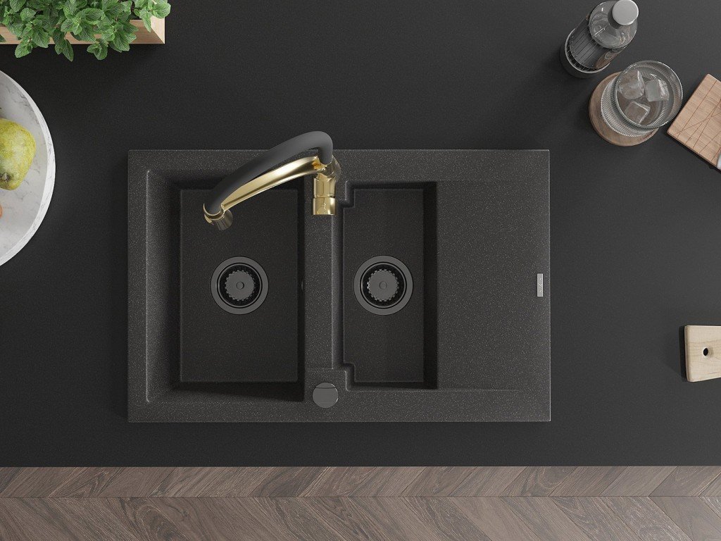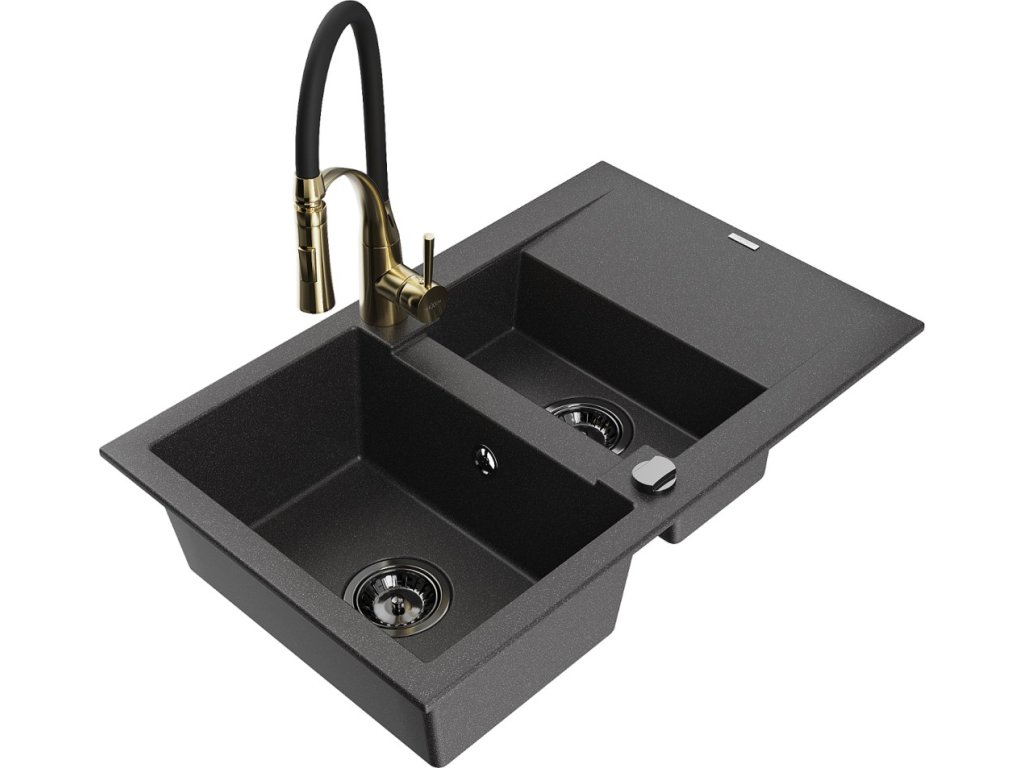 MEXEN/S - Gaspar granitový dřez 1.5 s odkapávačem včetně baterie Aster, černá kropenatá 6507-76-73450-57-B