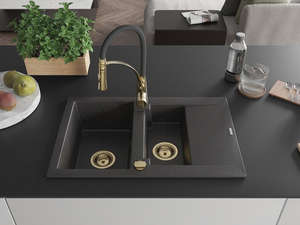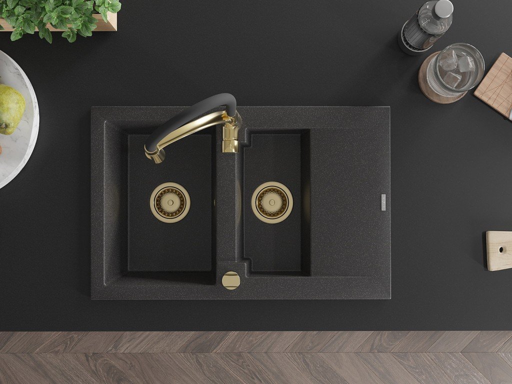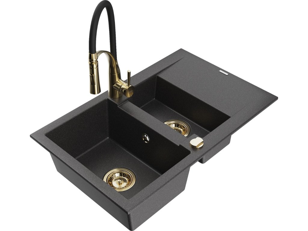 MEXEN/S - Gaspar granitový dřez 1.5 s odkapávačem včetně baterie Aster, černá kropenatá 6507-76-73450-57-G