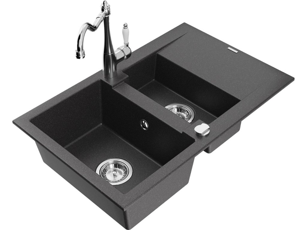 MEXEN/S - Gaspar granitový dřez 1.5 s odkapávačem včetně baterie Carla, černá kropenatá 6507-76-670700-00