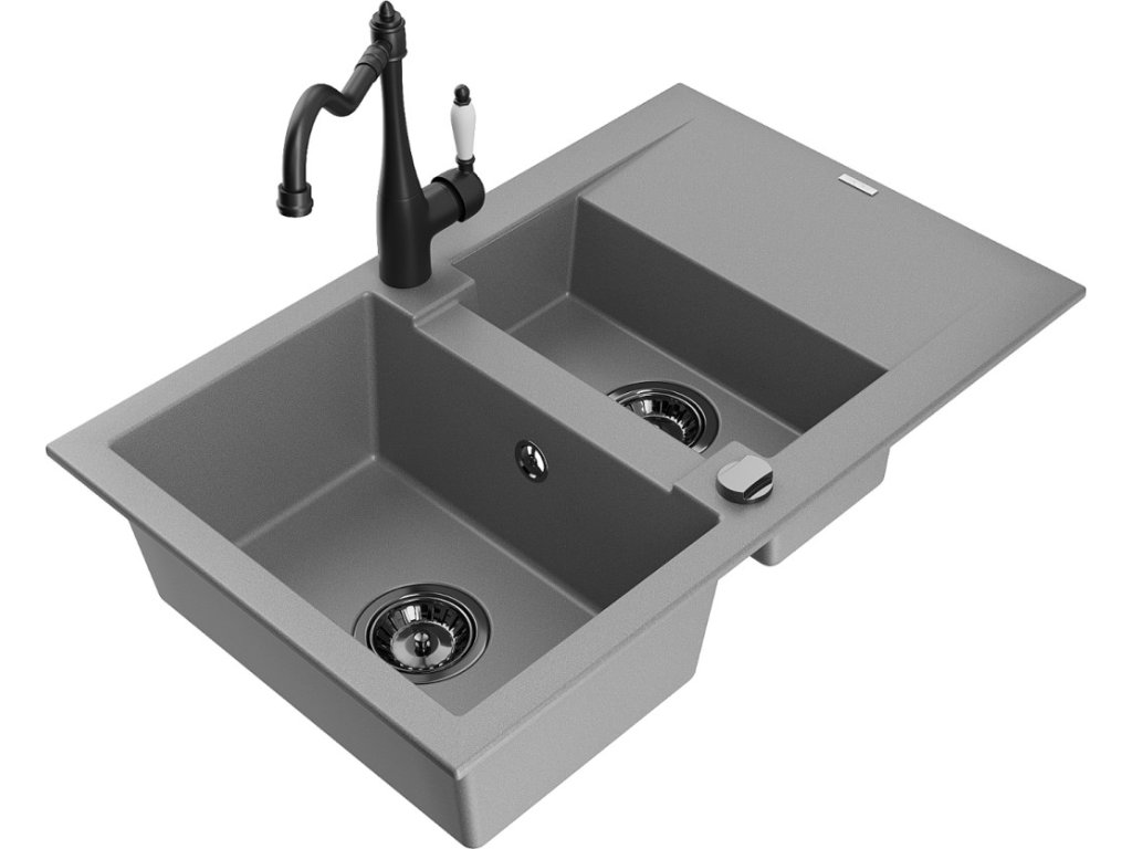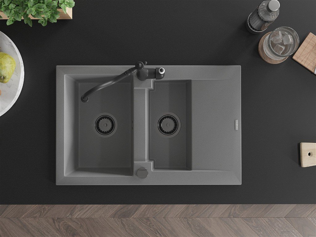 MEXEN/S - Gaspar granitový dřez 1.5 s odkapávačem včetně baterie Carla, šedá 6507-71-670700-70-B