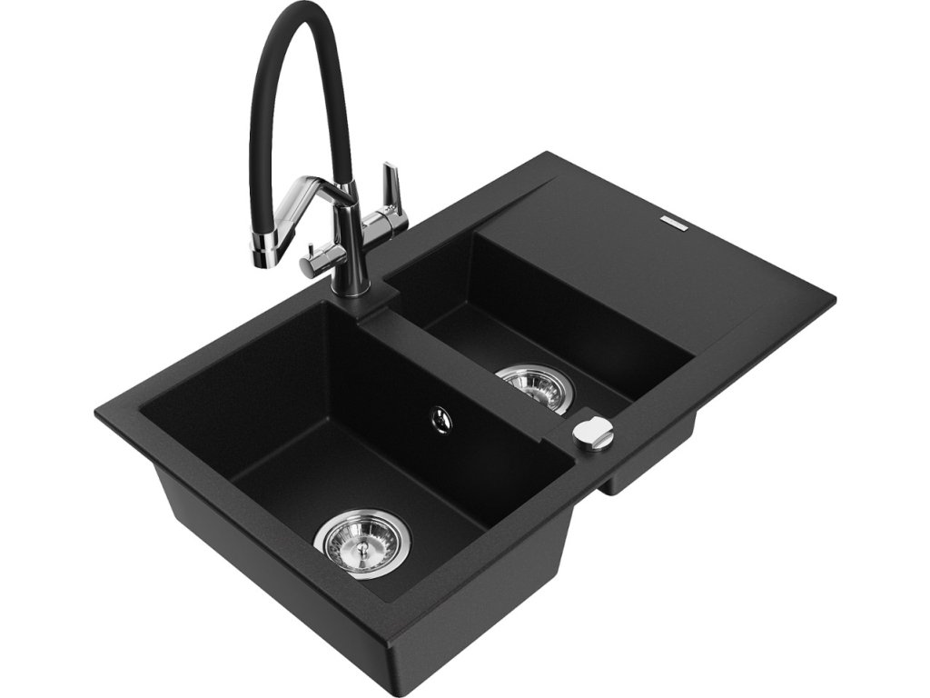 MEXEN/S - Gaspar granitový dřez 1.5 s odkapávačem včetně baterie Duo, černá 6507-77-671701-07