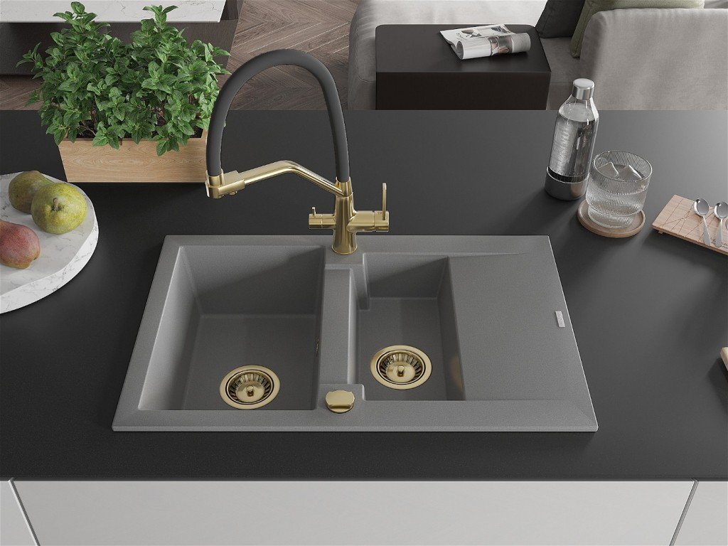 MEXEN/S - Gaspar granitový dřez 1.5 s odkapávačem včetně baterie Duo, šedá 6507-71-671701-57-G