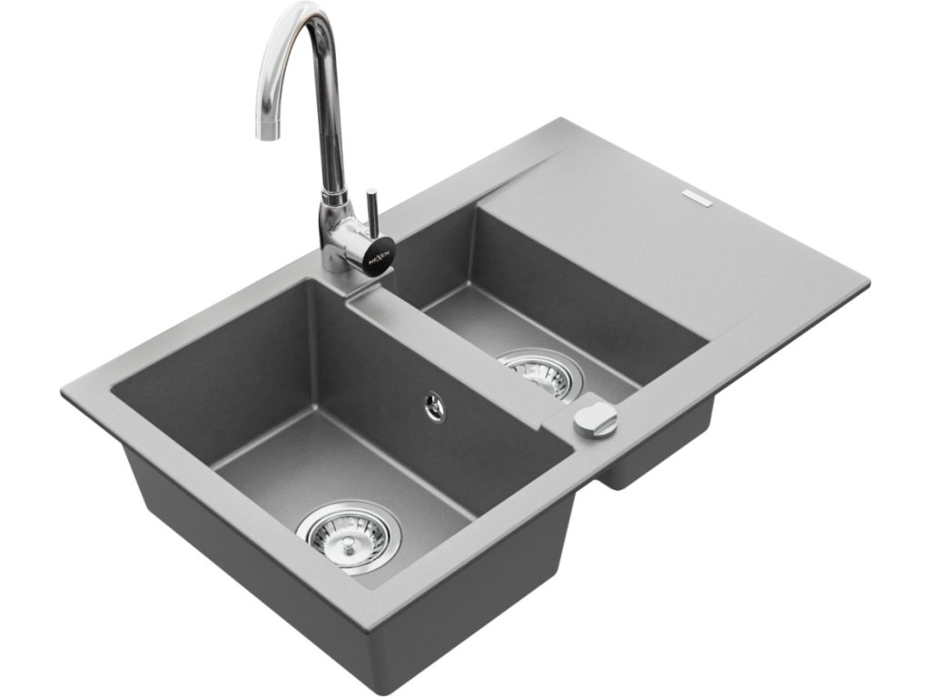 MEXEN/S - Gaspar granitový dřez 1.5 s odkapávačem včetně baterie Telma, šedá 6507-71-670200-00