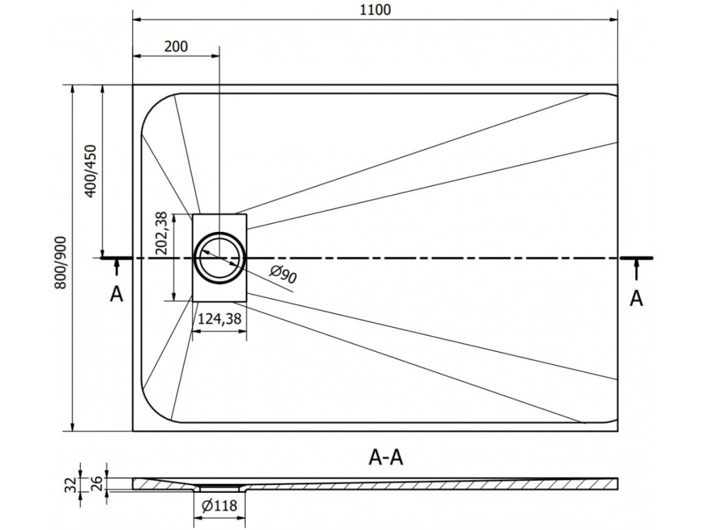 MEXEN/S - Hugo sprchová vanička SMC 110x90, černá, krytka černá 42709011-B