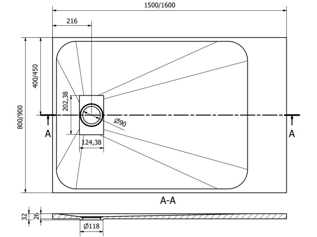 Možnost řezání sprchové vaničky