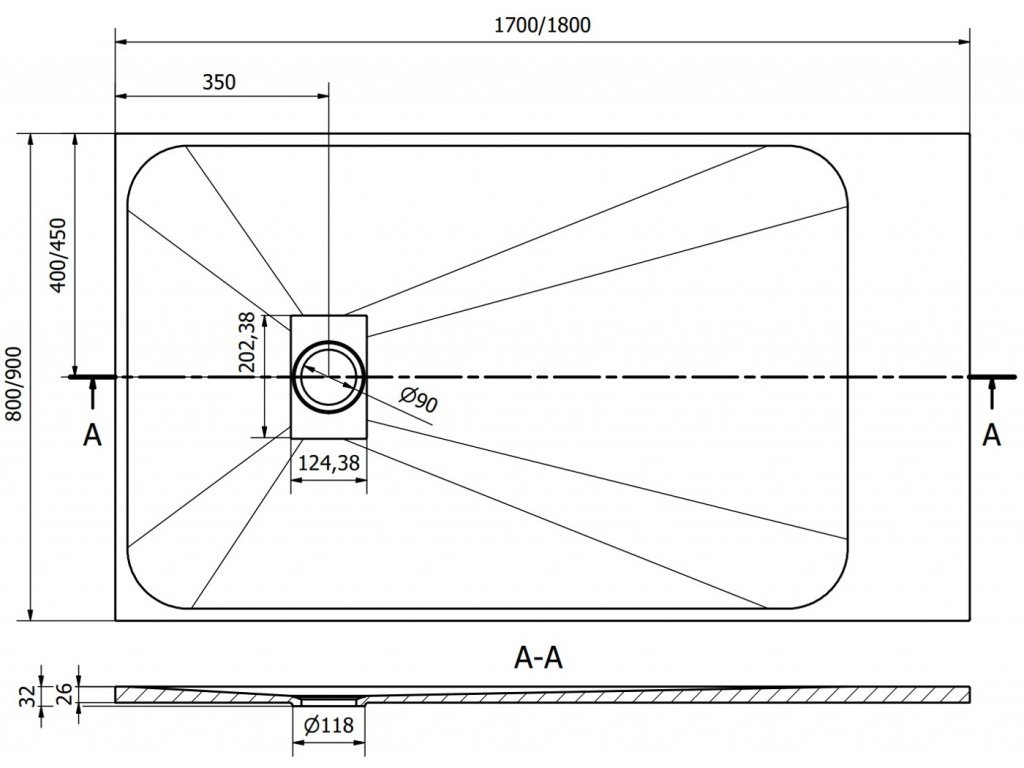 MEXEN/S - Hugo sprchová vanička SMC 170x90, bílá, krytka černá 42109017-B